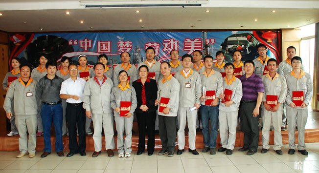 在片欢快的音乐声和热烈的掌声、欢呼声中,获奖选手有序上台奖。颁奖结束后,获奖选手纷纷与出席的导嘉宾、裁判员进行合影留念。至此,广维化工专场的河池市2013年职工职业技能大赛圆满结束。