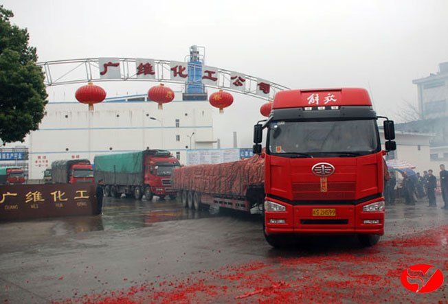 广维化工网消息:2月7日上午,广维化工公司举行2014年产品销售发车仪式。8点18分,党委书记孙先武声令下,鞭炮齐鸣,礼花绽放,十辆满载VAE乳液和PVA产品的大卡车列队驶出厂大门,开往全国各地,开启新的年新的希望。