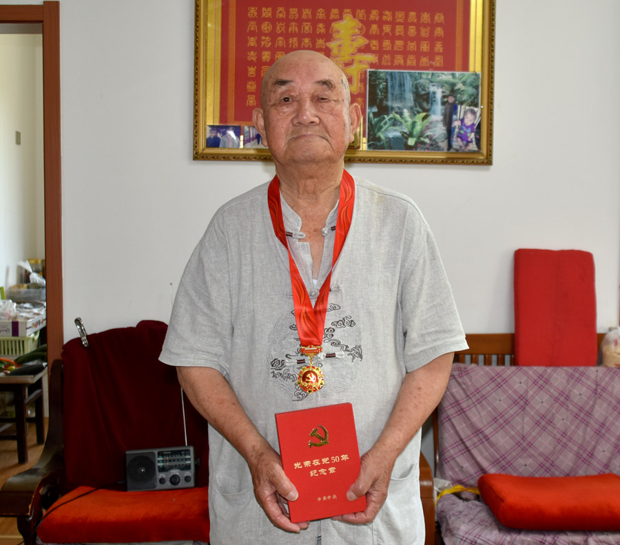 23日上午,吴福胜深入老党员家中,为老党员颁发佩戴纪念章,传达中共中央颁发“光荣在党50年”纪念章的重要意义,祝愿老党员身体健康、生活幸福。
